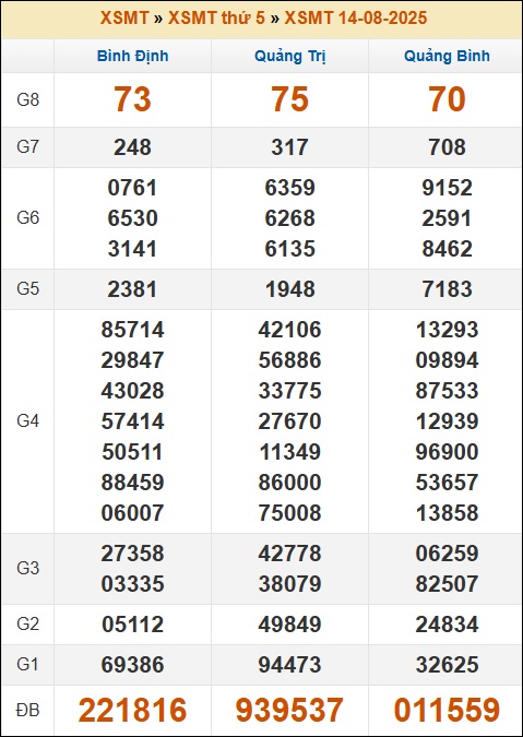 ⇒ Tham khảo số liệu thống kê tổng hợp kết quả XSMT ngày 21 tháng 8 năm 2025 chi tiết, theo từng tỉnh gồm có: loto về nhiều nhất, loto gan miền Trung, TK đầu - đuôi giải đặc biệt lâu chưa về nhất trong 10 ngày, 30 ngày gần đây, từ đó đưa ra nhận định xổ số miền Trung 21/8 hôm nay chi tiết nhất.
