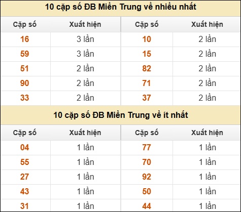 ⚡ 10 cặp số ĐB XSMT về nhiều nhất/ ít nhất tính đến ngày 21/8/2025: