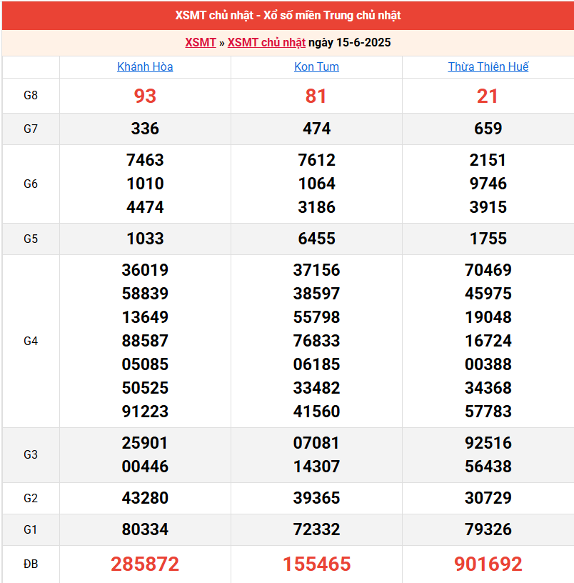 ✅ 2. Thống kê miền Trung 22/6/2025 hôm nay chủ nhật