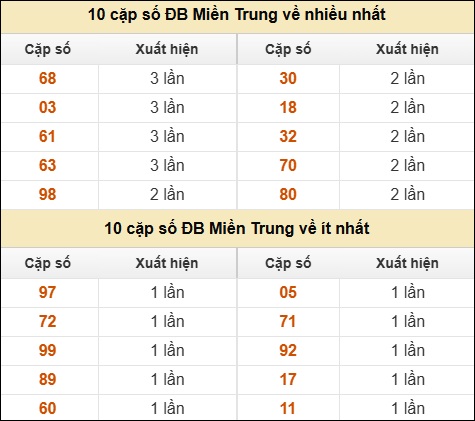 ⚡ 10 cặp số ĐB XSMT về nhiều nhất/ ít nhất tính dến ngày 23/8/2025: