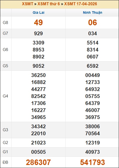 Xem kết quả kỳ quay trước, từ đó đưa ra nhận định kết quả XSMT hôm nay 24/4 gồm 2 tỉnh: Gia Lai, Ninh Thuận.