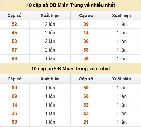 ⚡ 10 cặp số ĐB XSMT về nhiều nhất/ ít nhất tính dến ngày 24/04/2026: