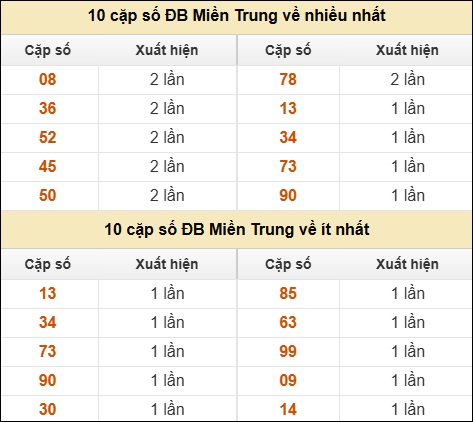 ⚡ 10 cặp số ĐB XSMT về nhiều nhất/ ít nhất tính dến ngày 27/02/2026: