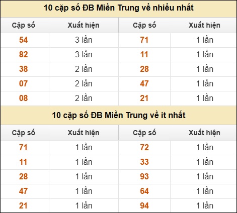 ⚡ 10 cặp số ĐB XSMT về nhiều nhất/ ít nhất tính dến ngày 27/04/2026: