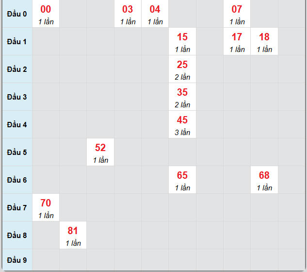 Thống kê cầu hôm nay giúp người chơi có thêm dữ liệu khi phân tích và dự đoán kỳ này được chính xác hơn. Trước khi đến với thống kê, mời các bạn theo dõi lại bảng kết quả kỳ trước để có cái nhìn bao quát hơn về vị trí các con số đã xuất hiện.