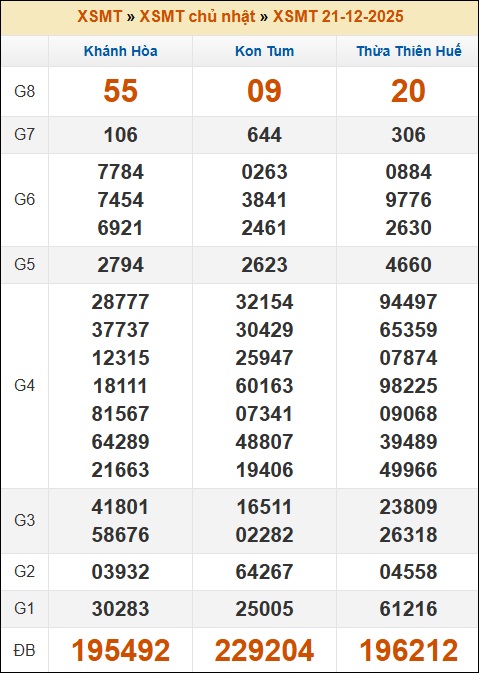 Kết quả xổ số Miền Trung 21/12/2025 chủ nhật tuần trước
