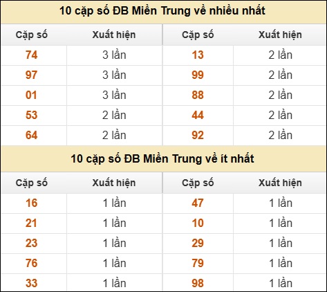 ⚡ 10 cặp số ĐB XSMT về nhiều nhất/ ít nhất tính dến ngày 28/02/2026:
