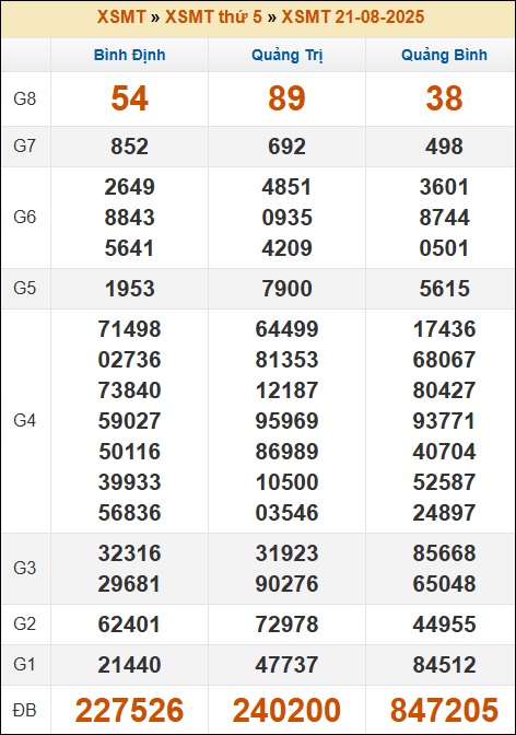 Kết quả xổ số Miền Trung 21/08/2025 thứ 5 tuần trước