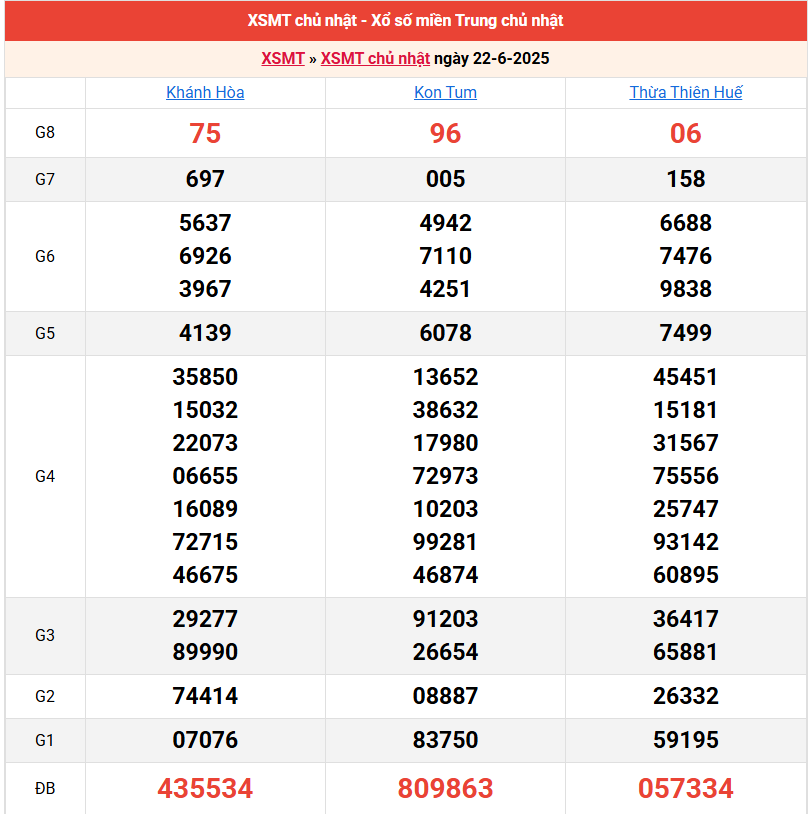 Bảng kết quả kỳ trước 22/6/2025
