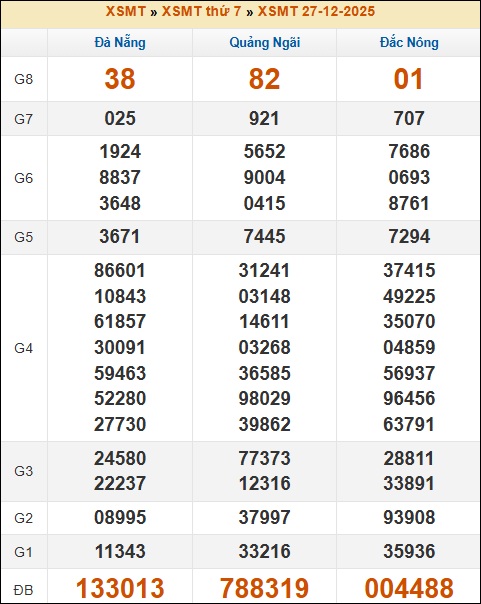 Kết quả xổ số Miền Trung 27/12/2025 thứ 7 tuần trước