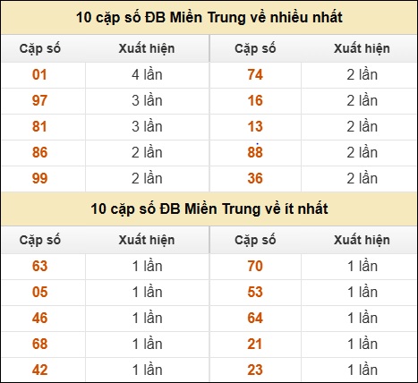 ⚡ 10 cặp số ĐB XSMT về nhiều nhất/ ít nhất tính dến ngày 03/01/2026: