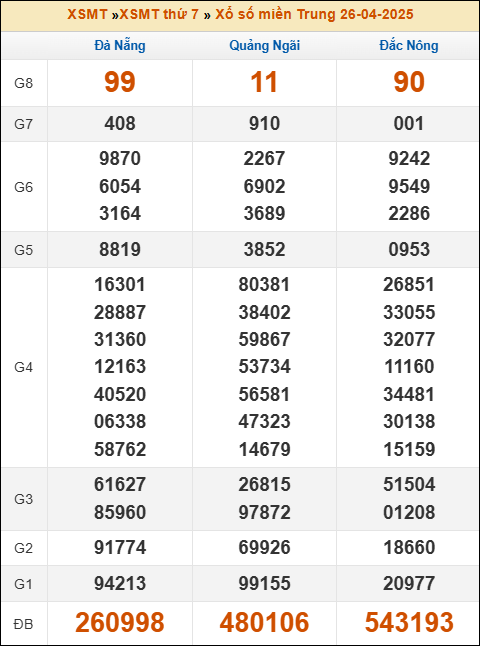 Bảng kết quả kỳ trước 26/4/2025
