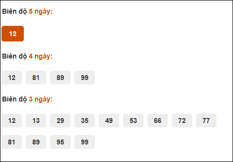 Đuôi 8: 31 ngày, Đuôi 5: 14 ngày, Đuôi 9: 10 ngày, Đuôi 3: 9 ngày, Đuôi 7: 3 ngày