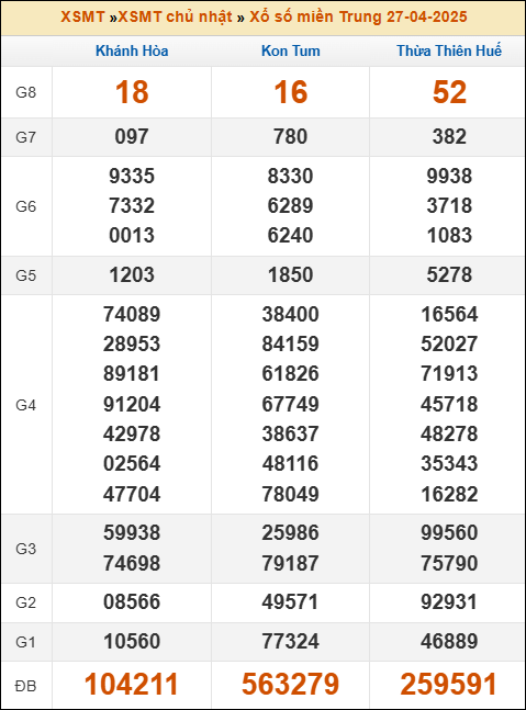 Bảng kết quả kỳ trước 27/4/2025