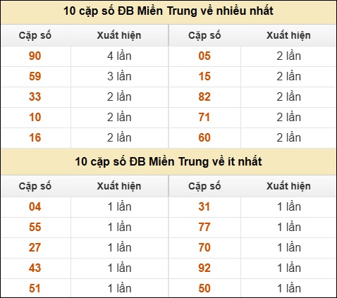 ⚡ 10 cặp số ĐB XSMT về nhiều nhất/ ít nhất tính đến ngày 4/9/2025: