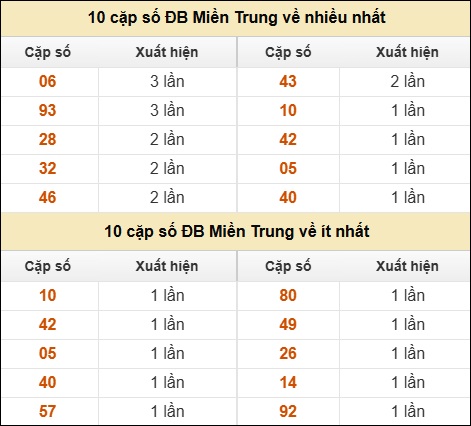 ⚡ 10 cặp số ĐB XSMT về nhiều nhất/ ít nhất tính dến ngày 5/9/2025: