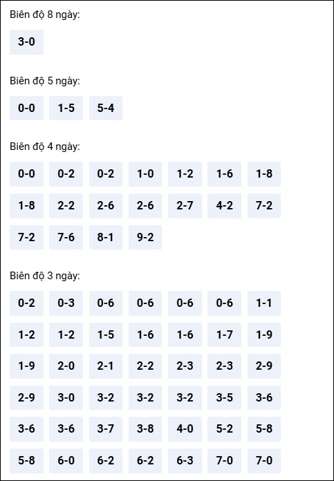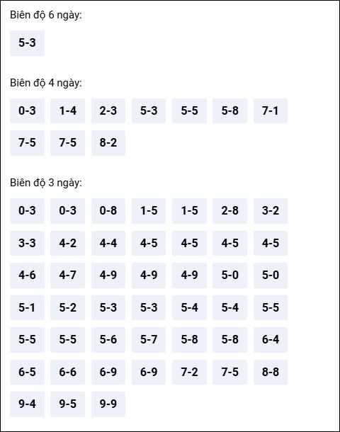 Đuôi 8: 8 ngày, Đuôi 5: 7 ngày, Đuôi 2: 6 ngày, Đuôi 9: 5 ngày, Đuôi 4: 4 ngày