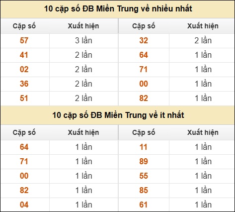 ⚡ 10 cặp số ĐB XSMT về nhiều nhất/ ít nhất tính dến ngày 08/04/2026: