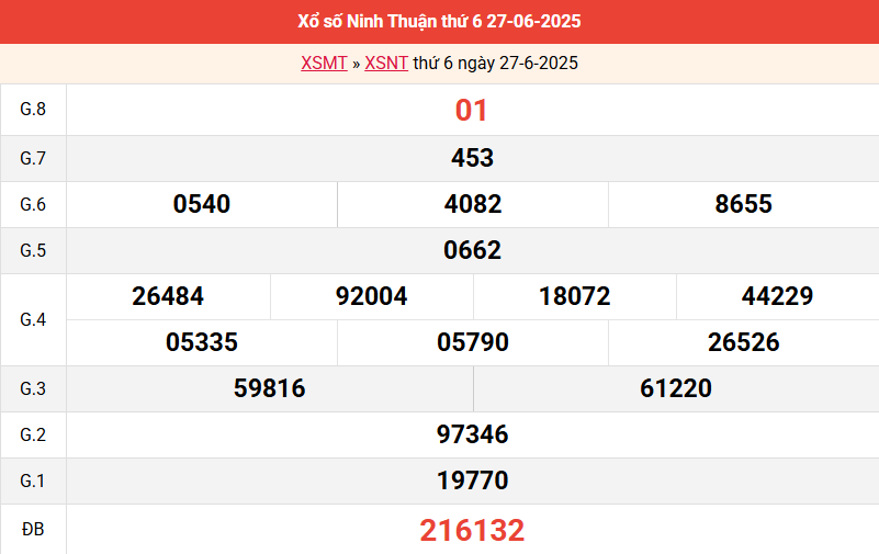 Bảng kết quả Ninh Thuận ngày 27/6/2025 tuần trước