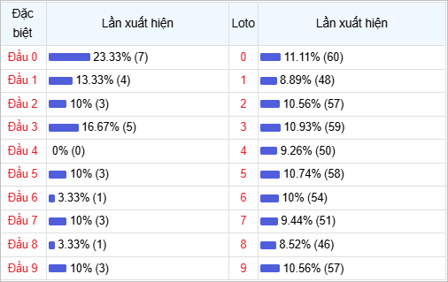⭐️ Thống kê tần suất đầu đuôi đặc biệt về trong tháng qua:
