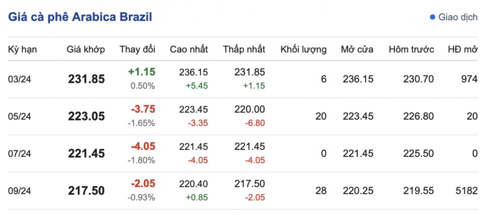 Đối với cà phê Arabica giao dịch trên sàn B3 Brazil sẽ mở cửa từ 19:00 - 02:35 (hôm sau), giờ Việt Nam.