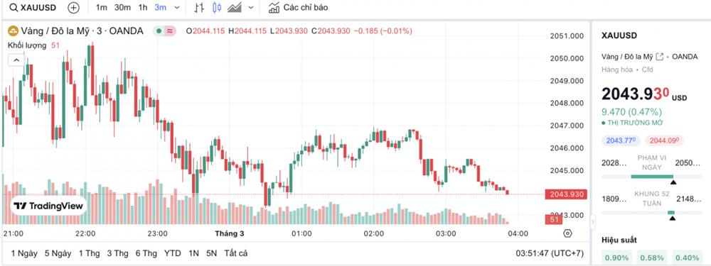 Giá vàng thế giới hôm nay 1/3/2024 và biểu đồ biến động giá vàng thế giới 24h qua