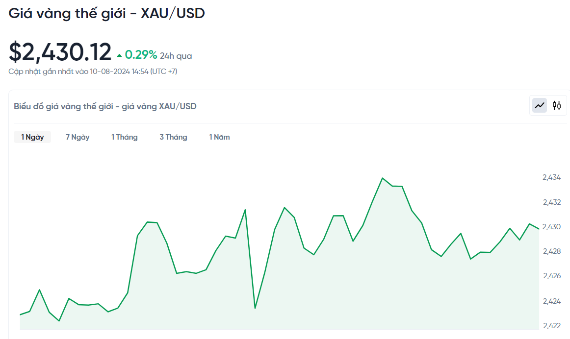 Giá vàng thế giới hôm nay 11/8/2024 và biểu đồ biến động giá vàng thế giới 24h qua