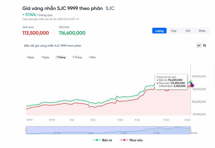 Giá vàng hôm nay sáng 25/4, tính đến 7h30