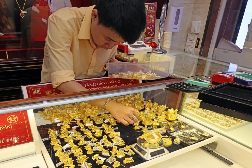 Vàng bày bán tại công ty vàng BTMC. Ảnh: Trần Việt - TTXVN