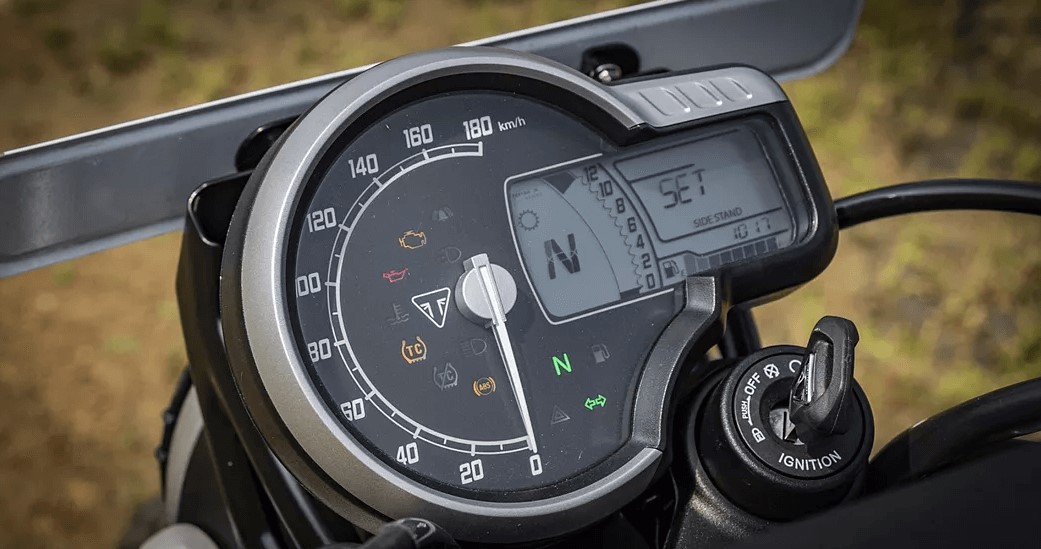 Cụm đồng hồ của Triumph Scrambler 400 XC là sự kết hợp giữa phong cách cổ điển và hiện đại. Nó bỏ qua màn hình TFT và thay vào đó sử dụng dạng bán kỹ thuật số với màn hình hiển thị bao gồm các chỉ báo cho hệ thống quản lý động cơ, áp suất dầu, nhiệt độ động cơ, hệ thống kiểm soát lực kéo và chỉ báo ABS.