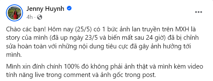 Jenny Huỳnh đã nhanh chóng đính chính lại vụ việc bằng cách đưa ra bằng chứng không thể chối cãi.