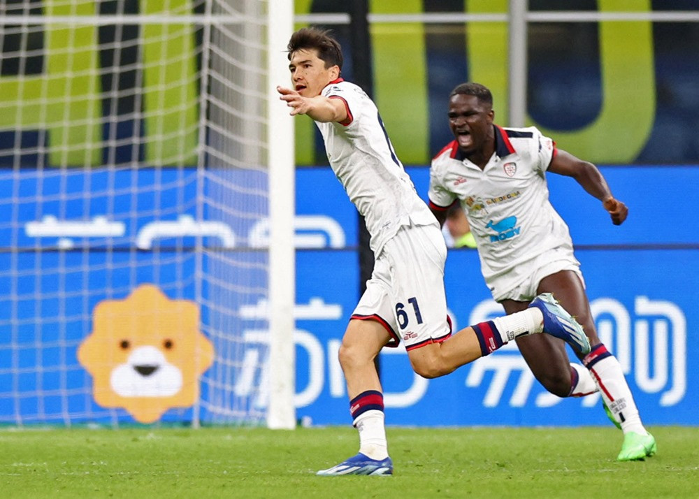 Phút 64, Luvumbo làm tường cho Shomurodov và cú đá của tiền đạo người Uzbekistan đưa bóng qua khe chân Bastoni rồi đi qua thủ môn Sommer, gỡ hòa 1-1 cho Cagliari