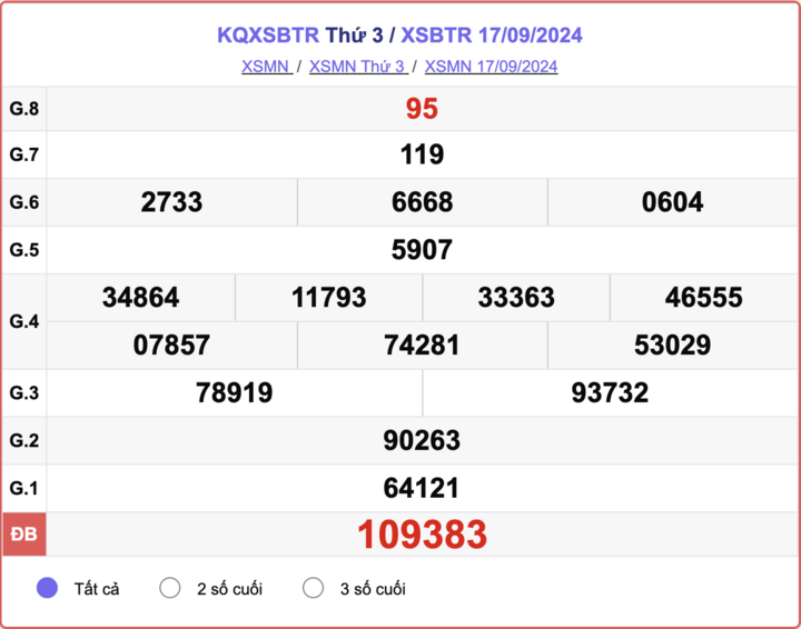 XSBTR 17/9, kết quả xổ số Bến Tre hôm nay 17/9/2024.
