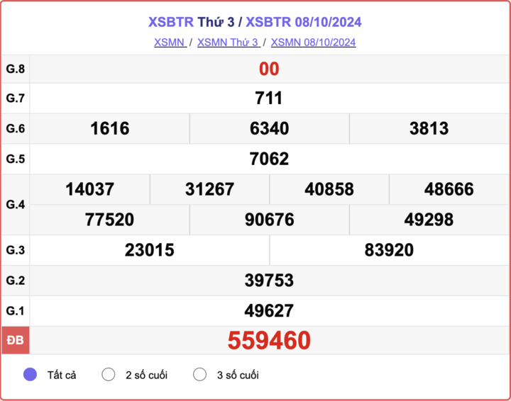 XSBTR 8/10, kết quả xổ số Bến Tre hôm nay 8/10/2024.
