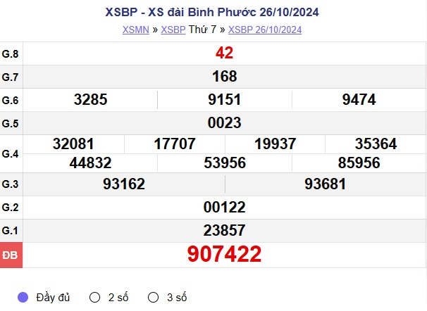 Xem lại kết quả xổ số Bình Phước các kỳ trước