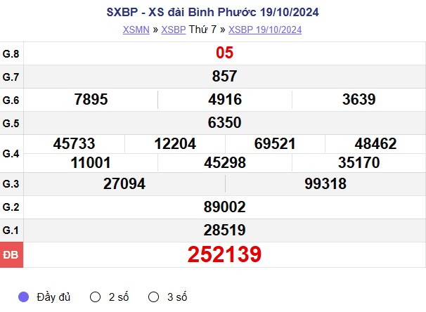 XSBP 16/11. Kết quả xổ số Bình Phước hôm nay - thứ Bảy ngày 16/11/2024 sẽ được cập nhật nhanh chóng và chính xác nhất trên VTC News. Kết quả các giải thưởng XSBP ngày 16/11/2024 được công bố lần lượt từ giải nhất cho đến giải tám, cuối cùng là giải đặc biệt.