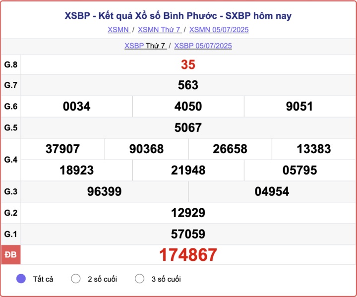 Trực tiếp Kết quả xổ số Bình Phước hôm nay - Kết quả XSBP 5/7 - XSBP hôm nay Thứ Bảy ngày 5/7/2025.