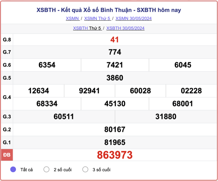 - Kết quả XSBTH 30/5/2024