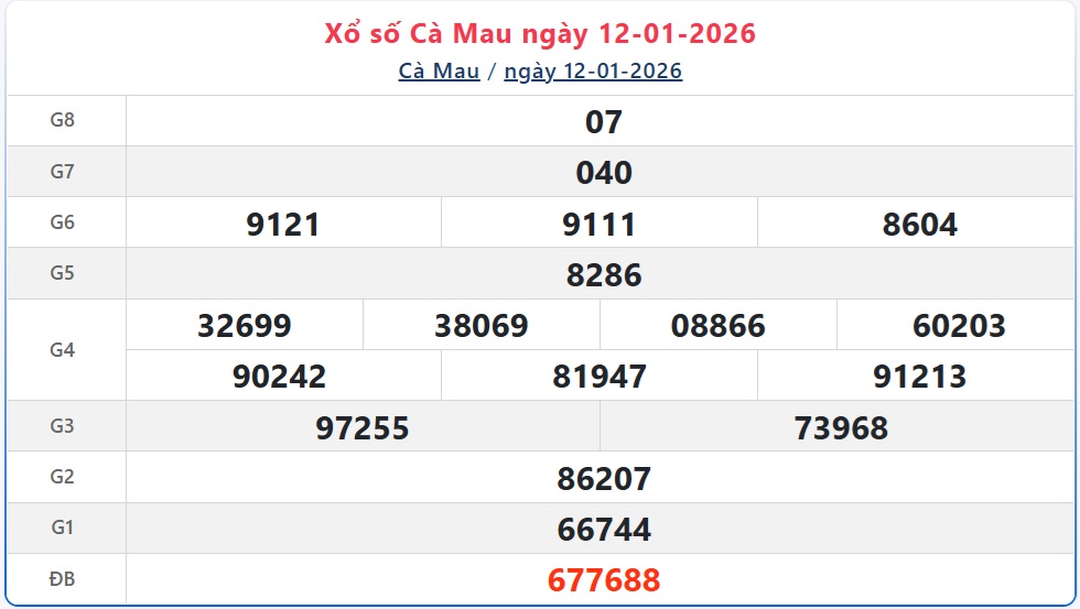 Trực tiếp Kết quả xổ số Cà Mau hôm nay - Kết quả XSCM 12/1 - XSCM hôm nay Thứ Hai ngày 12/1/2026