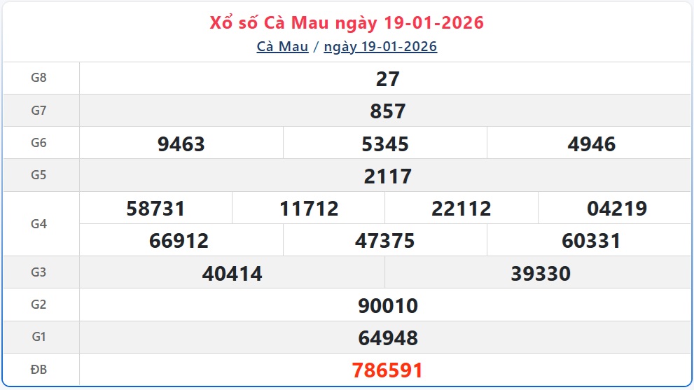 Trực tiếp Kết quả xổ số Cà Mau hôm nay - Kết quả XSCM 19/1 - XSCM hôm nay Thứ Hai ngày 19/1/2026