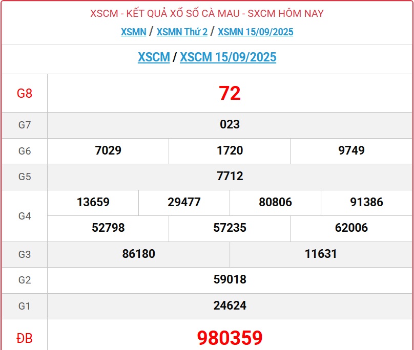 XSCM 22/9, Kết quả xổ số hôm nay ngày 22/9, XSCM Thứ Hai, Trực tiếp KQXSCM ngày 22/9, Kết quả xổ số Cà Mau hôm nay ngày 22/9/2025, Kết quả xổ số Cà Mau Thứ Hai ngày 22/9/2025.