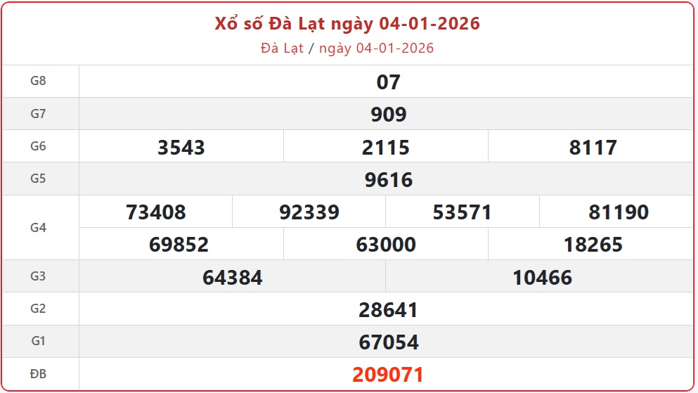 Kết quả xổ số Đà Lạt chủ nhật ngày 4/1/2026