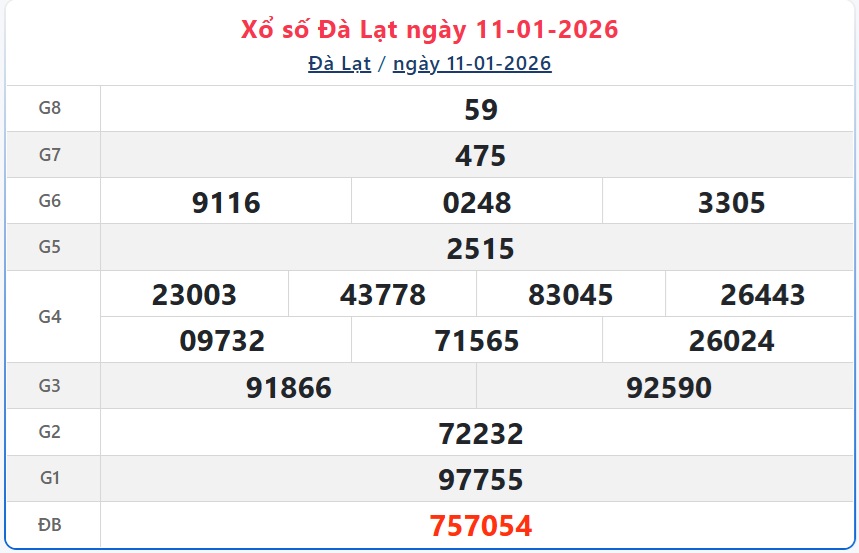 Theo dõi kết quả xổ số Đà Lạt hôm nay 11/1/2026 nhanh chóng và chính xác nhất để không bỏ lỡ thời gian nhận thưởng.
