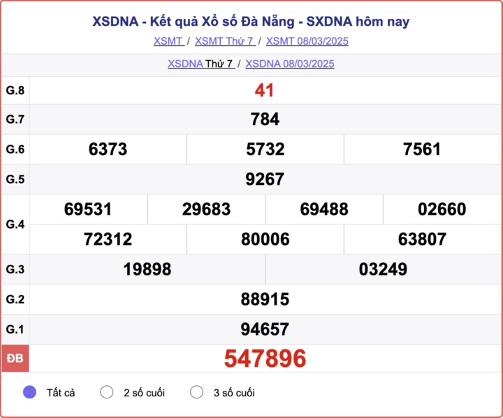 XSDNA 8/3, kết quả xổ số Đà Nẵng hôm nay 8/3/2025.