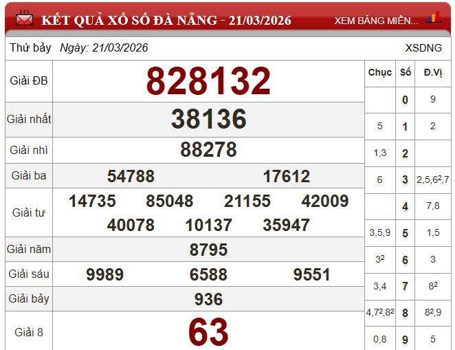 Theo dõi ngay kết quả xổ số Đà Nẵng hôm nay 25/3/2026 nhanh chóng và chính xác nhất.