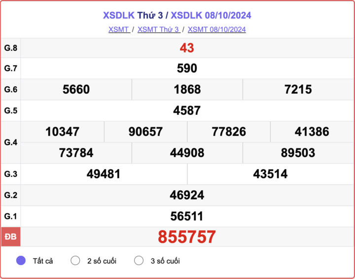 XSDLK 8/10, kết quả xổ số Đắk Lắk hôm nay 8/10/2024.