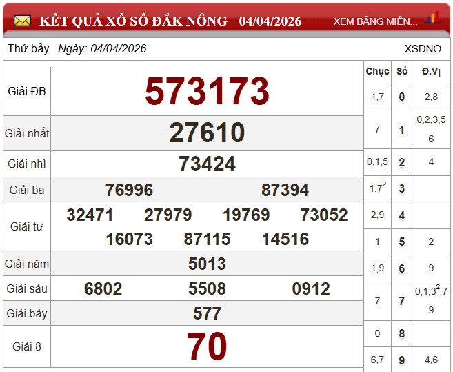 Kết quả xổ số Đắk Nông ngày 4/4/2026
