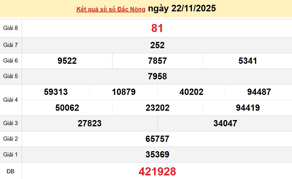 Kết quả xổ số Đắk Nông ngày 22/11/2025