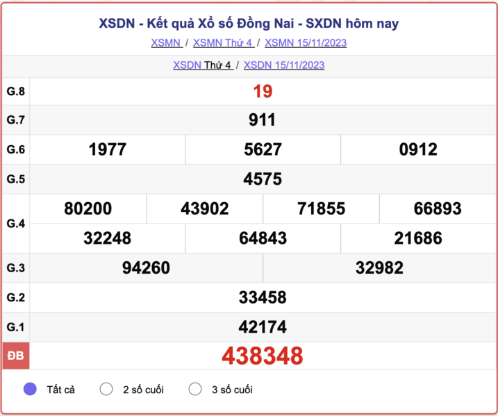 - KQXS Đồng Nai thứ Tư ngày 15/11/2023