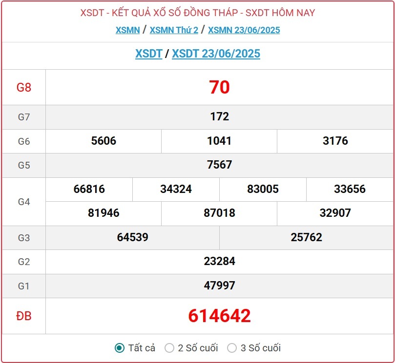 XSDT 23/6, kết quả xổ số Đồng Tháp hôm nay23/6/2025.
